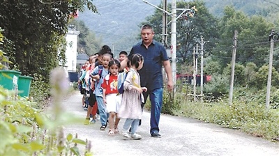 天刚蒙蒙亮,王值军挑着扁担又出发了。学校虽然建在库区,但周边没有水源,王值军要走几百米的山路将水挑回。在学校附近的旅游公路修通前,他还要摇着小船接送不住校的孩子们……